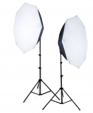 Een greenscreen is een egale, groene achtergrond die met software gemakkelijk weggefilterd kan worden. Als u een persoon voor het scherm plaatst en filmt, dan kunt u de achtergrond vervangen voor hele andere beelden. Hiermee kunt u heel gemakkelijk een eigen speelfilm maken die zich waar dan ook ter wereld kan afspelen, of zelfs op de maan. Verzin het maar... Deze achtergrond bestaat uit een achtergrond ophangsysteem en een papierrol van 1,38m breed en 11m lang. De kleur van het papier is "chroma green", oftewel een kleur die perfect is voor greenscreen-toepassing. Het papier is goed van dikte, scheurt niet zo snel en is 100% effen en egaal. Bij greenscreen is het voor een optimaal effect belangrijk een 100% egale achtergrond te hebben. Papier is hiervoor veruit de beste oplossing. Als het vies wordt, knipt u het af. Door de lengte (11 meter!) heeft u niet snel een nieuwe rol nodig. En als dat toch nodig is, is vervangen niet duur. Het achtergrondsysteem bestaat uit twee statieven (max. hoogte 250 cm), twee rolhouders, twee beugels, een ketting en een gewichtje voor de ketting. U plaatst de rolhouders links en rechts in de achtergrondrol. De harde kartonnen kern van de rol fungeert dan dus als dwarsligger. Met de ketting kunt u de rol heel precies op- en afrollen en vastzetten. Op dit systeem passen behalve de meegeleverde groene rol, uiteraard ook papierrollen in een andere kleur of breedte (zoals de 2,75m brede rollen). De verlichtingDeze veelzijdige daglicht lampenset biedt u twee lamphouders met in elk vier spiraallampen (spaarlampen) van 55W. Dit is grofweg vergelijkbaar met 220W normaal licht, wat betekent dat iedere lampunit bijna 1000W aan licht afgeeft!De set wordt geleverd met twee octaboxen (achthoekige softboxen) met een diameter van 70 cm. Deze softboxen maken het licht diffuus en zorgen voor een mooie, natuurlijke spreiding. Ook worden twee stevige statieven meegeleverd die een maximale hoogte van 240 cm kunnen bereiken. De 4 lampen per unit zijn in paren in- en uitschakelbaar. Dit betekent dat u een unit dus op 50% en op 100% vermogen kan zetten. De kleurtemperatuur is "koud licht", oftewel neutraal wit daglicht. Dit is optimaal voor foto- en videobewerking. Deze set is universeel inzetbaar, bijvoorbeeld voor productfotografie en portretfotografie. De spiraallampen worden nauwelijks warm, daardoor heeft de set geen motorkoeling. Dat maakt deze set dus bijzonder geschikt voor video. TipsDe opbouw spreekt voor zich, maar soms is het handig om een duidelijke foto-handleiding te hebben. Je vindt hem hier: Levering